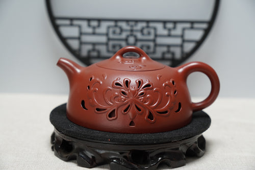 Inner-circulation hollowed-out teapot made of Zisha clay, fully handmade